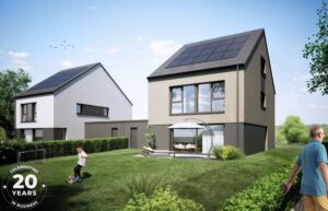 Maison jumelée habitable de 147m2 et totale de 256m2 sur un terrain de 4.94 ares située dans le lotissement « Op Eizemuer » à Sprinkrange (Dipach).